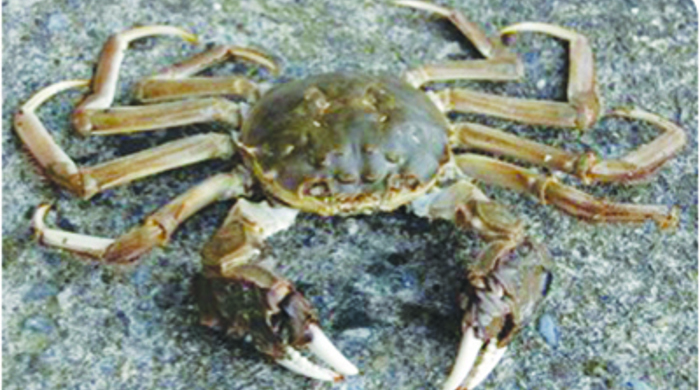 The Chinese mitten crab is a small to medium sized crab, named for the dense patches of bristles (“hair”) on its claws.
